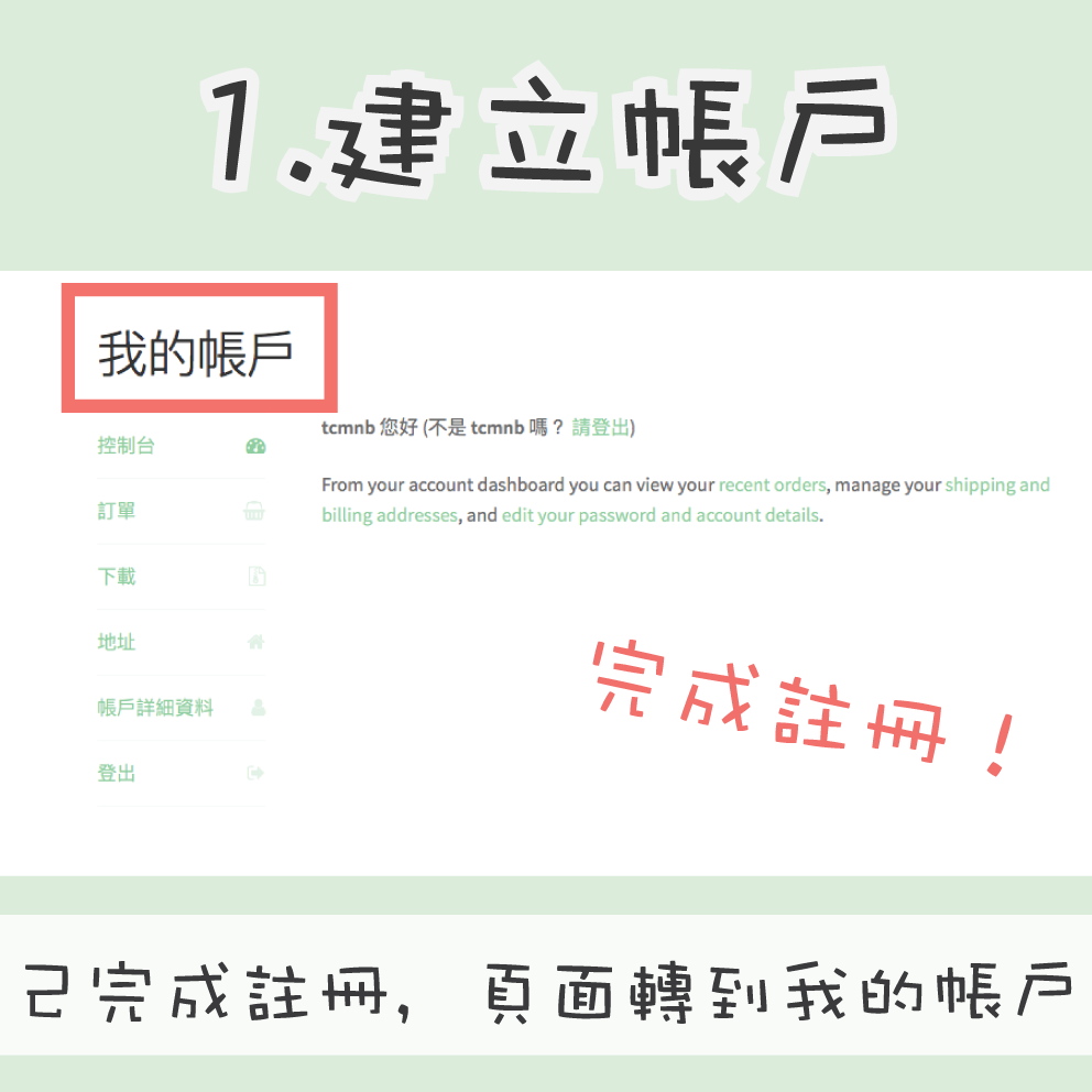 ⚫ 己完成註冊,頁面轉到我的帳戶